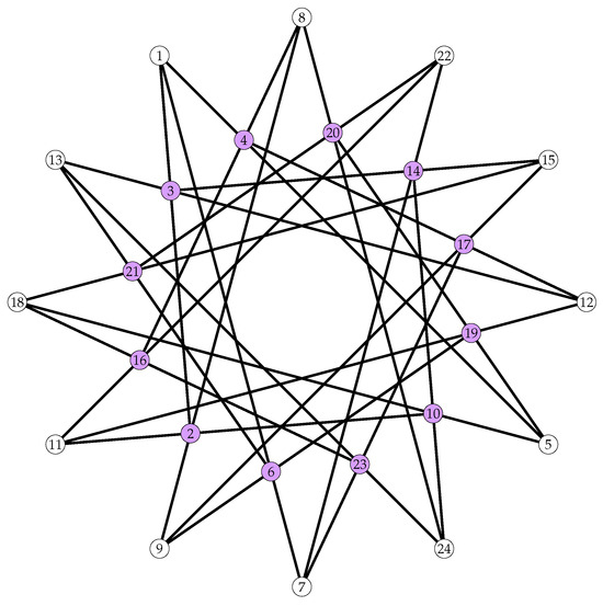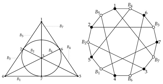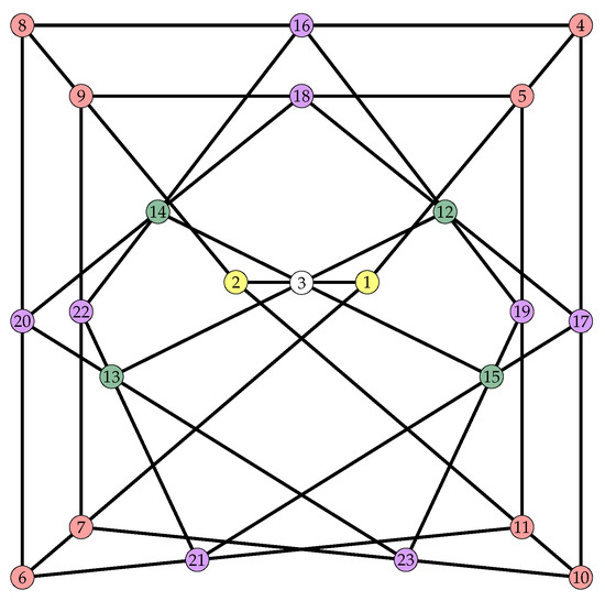- Coxeter, H.S.M. Self-dual configurations and regular graphs. Bull. Amer. Math. Soc. 1950, 56, 413–455. [Google Scholar] [CrossRef]