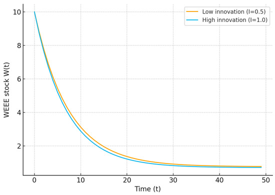 The rapid growth of Waste Electrical and Electronic Equipment (WEEE) in the European Union highlights the need for a rigorous understanding of its long-term dynamics and the role of innovation in shaping its trajectory. This study investigates how innovation influences the dynamics of WEEE generation in the European Union. We develop an innovation-adjusted mathematical model of e-waste as a stock flow system and prove the existence and global stability of a unique positive equilibrium. The model analytically generates an environmental Kuznets-type turning point and shows that innovation reduces waste accumulation by accelerating effective depreciation. To link the theoretical results with empirical patterns, we embed the model in a STIRPAT panel specification using annual data for 27 EU member states from 2013 to 2023, where EU Eco-innovation Index (EEI) serves as a composite index which directly captures policy-driven green technology and circular economy activities, aligning precisely with our theoretical framework. We also extend the quasi-demeaning transformation to panels with correlated shocks and establish its consistency under a factor structured error process. The empirical estimates confirm a positive effect of income on WEEE at lower development levels and a negative coefficient on its squared term, consistent with an inverted U pattern, while innovation is associated with lower waste intensity. These findings demonstrate how mathematical modeling can strengthen the interpretation of macro panel evidence on circularity and provide a basis for future optimization of innovation driven sustainability transitions.