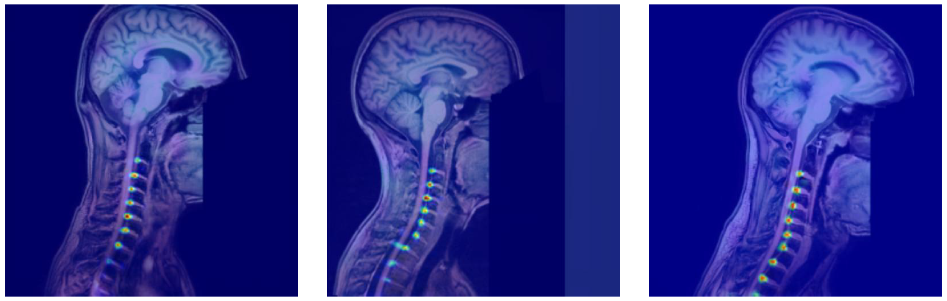 - Azad, R.; Rouhier, L.; Cohen-Adad, J. Stacked Hourglass Network with a Multi-level Attention Mechanism: Where to Look for Intervertebral Disc Labeling. In Machine Learning in Medical Imaging, Proceedings of the 12th International Workshop, MLMI 2021, Strasbourg, France, 27 September 2021; Springer: Cham, Switzerland, 2021; pp. 406–415. [Google Scholar]
