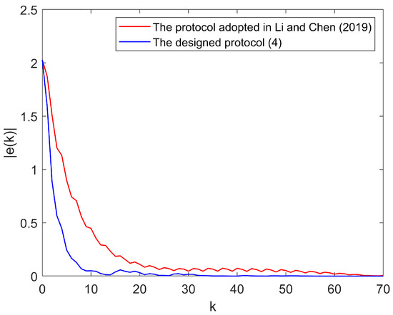 trajectories with protocol adopted in Li and Chen (2019) [18] and protocol (4) designed in this paper.