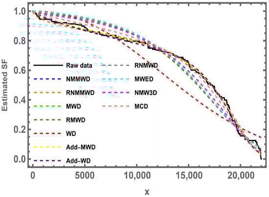 This section discusses five distinct estimation strategies applicable to NMMWD: maximum likelihood estimation (MLE), least square estimation (LSE), weighted least square estimation (WLSE), Cram–von Mises estimation (CVME), and Anderson–Darling estimation (ADE). The new model’s unknown parameters are estimated using these techniques.