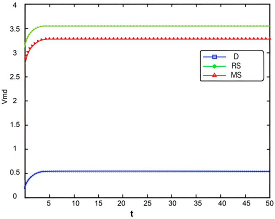 Substituting Equation (A45) into Equations (A48) and (A49), then taking the first-order partial derivatives of the right-hand sides of Equations (A48) and (A49) with respect to Tmu4, Tmd4, and , and setting them equal to zero, yields the following: