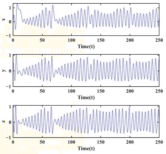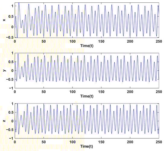 denotes the time-dependent order of differentiation. The variable-order fractional Genesio–Tesi system is then described as: