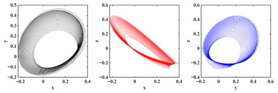 Figure 20 shows the bifurcation behavior of the considered fractional-order system for the fractional order