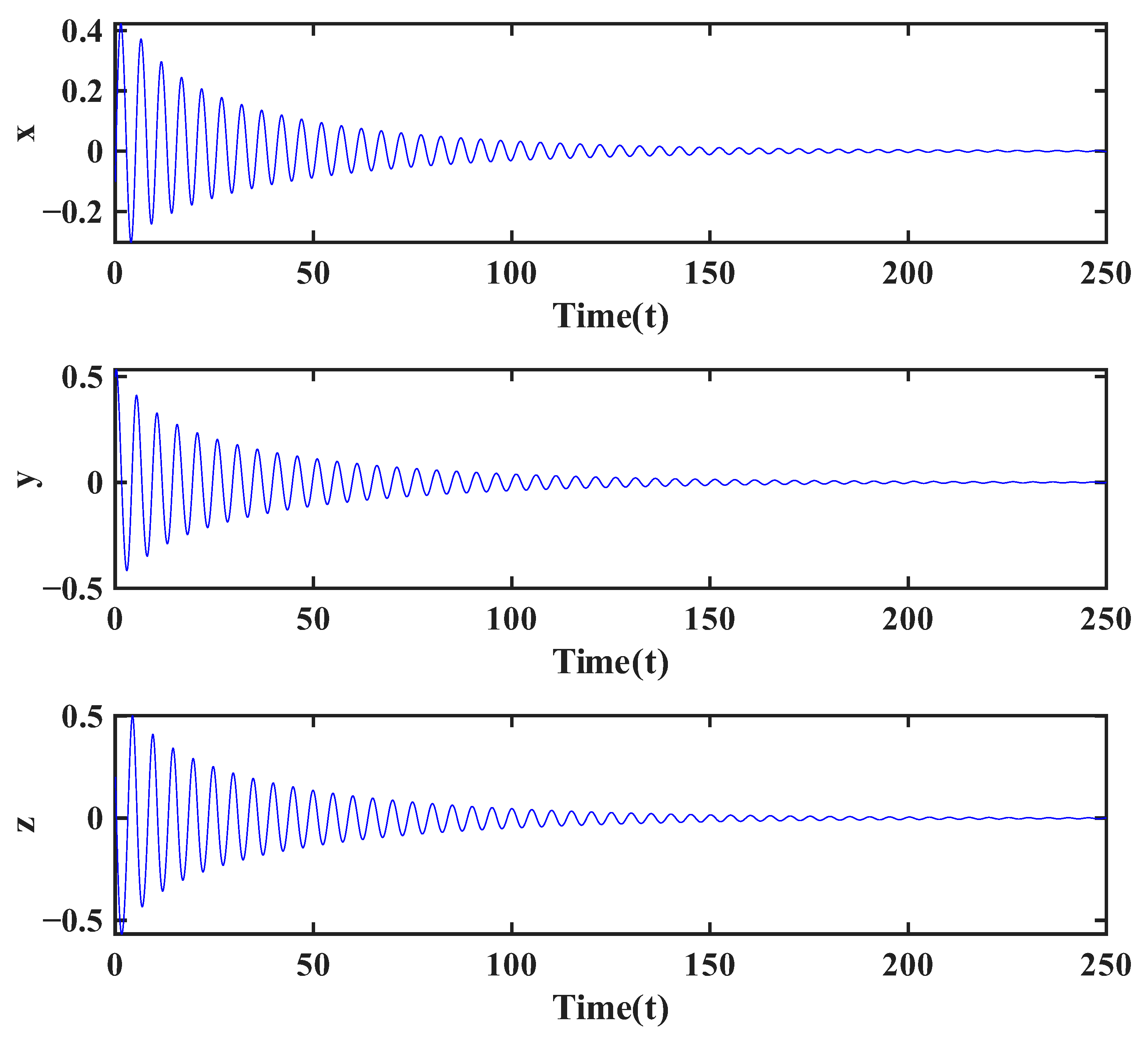 destabilize an asymptotically stable equilibrium point. The system, which demonstrates damped oscillations converging to zero for constant