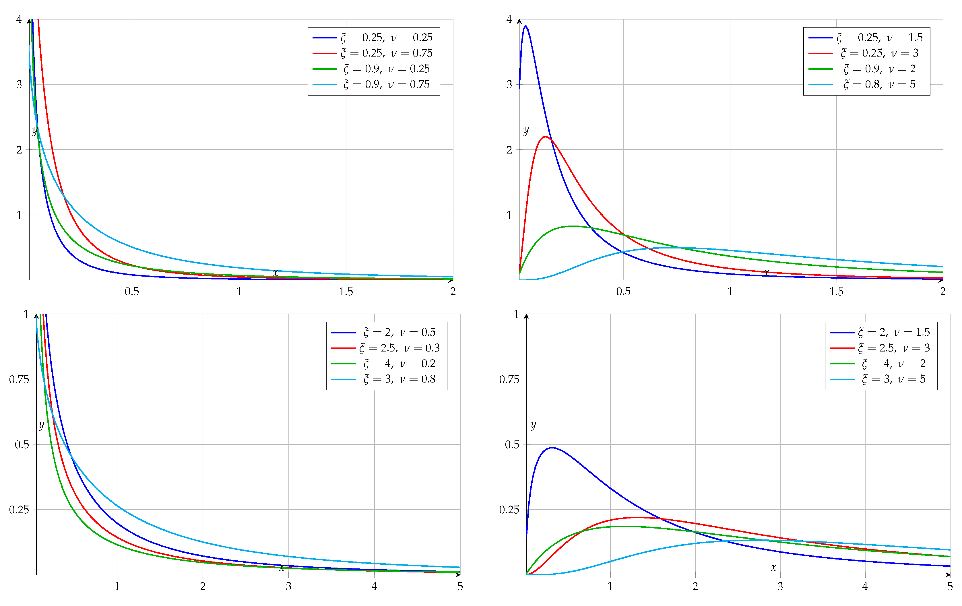 - Johnson, N.L.; Kotz, S.; Balakrishnan, N. Continuous Univariate Distributions-2, 2nd ed.; John Wiley & Sons: New York, NY, USA, 1994. [Google Scholar]