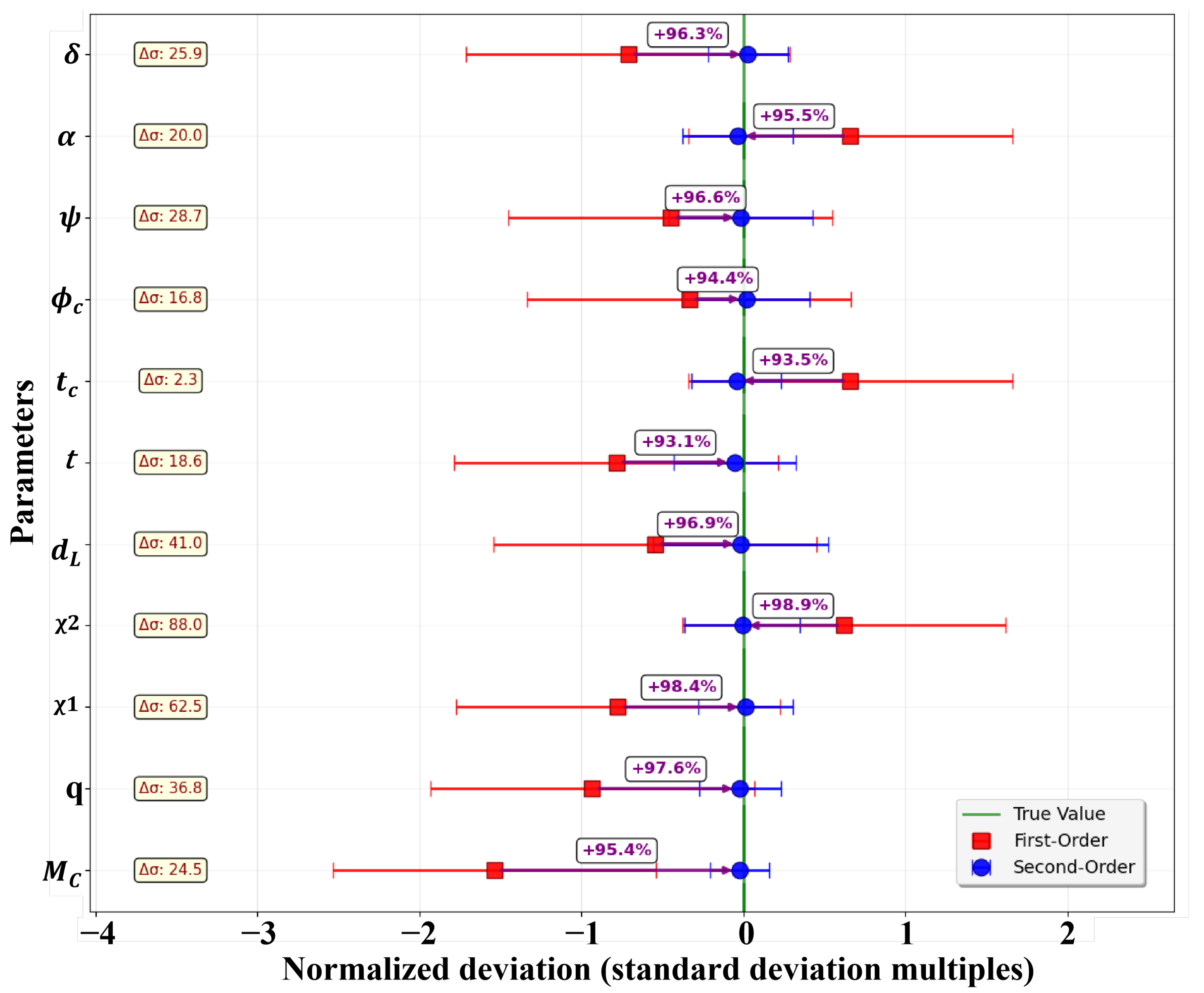 First-order methods show a 4% systematic bias in estimating chirp mass, which has profound implications for stellar evolution studies, population synthesis and black hole physics, potentially affecting formation channel discrimination and mass gap characterization. The improved distance measurement with a 96.9% accuracy enhancement directly impacts gravitational wave cosmology, where first-order biases of would systematically affect Hubble constant measurements from standard sirens. First-order parameter biases of order – are comparable to the precision of current gravitational wave tests of general relativity, ensuring systematic estimation errors do not masquerade as physics beyond Einstein’s theory.