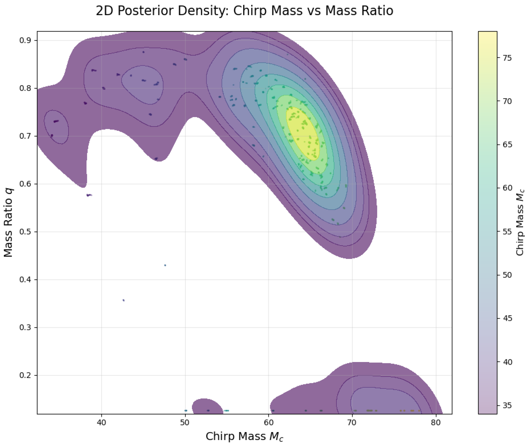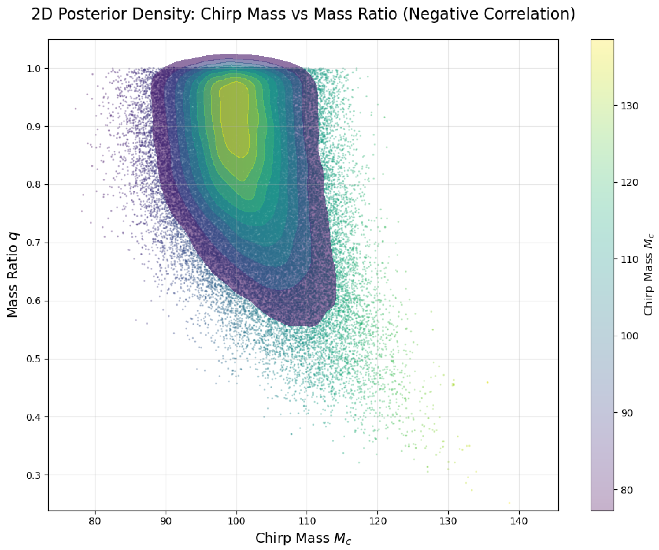 Figure 8), meaning that larger chirp masses tend to correspond to smaller mass ratios.