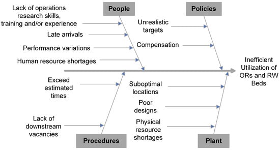 Cause and effect analysis is applied to the system of ORs and RW beds. Figure 3 is the corresponding Ishikawa diagram.