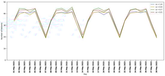 - Beliën, J.; Demeulemeester, E. Building cyclic master surgery schedules with leveled resulting bed occupancy. Eur. J. Oper. Res. 2007, 176, 1185–1204. [Google Scholar] [CrossRef]