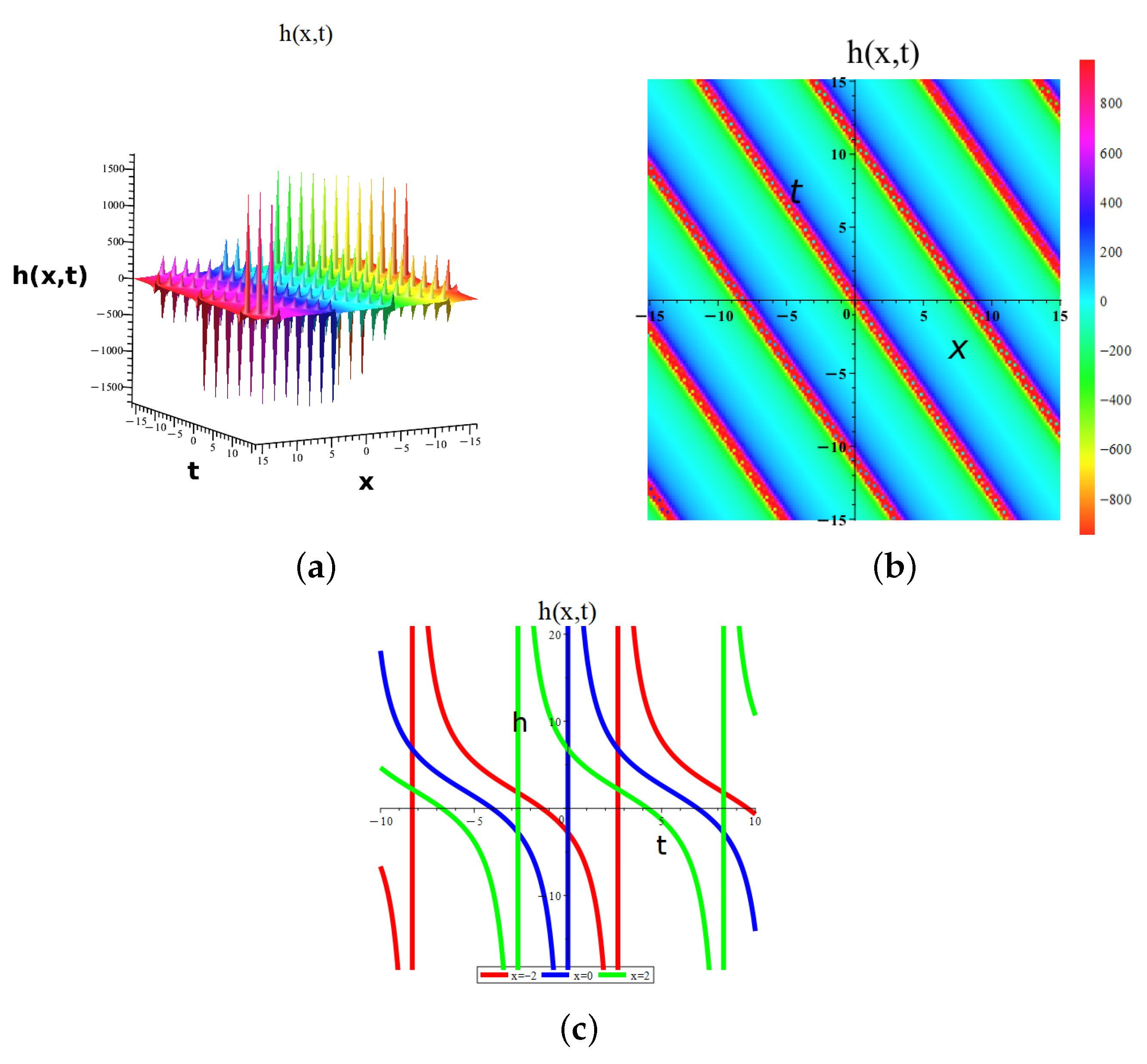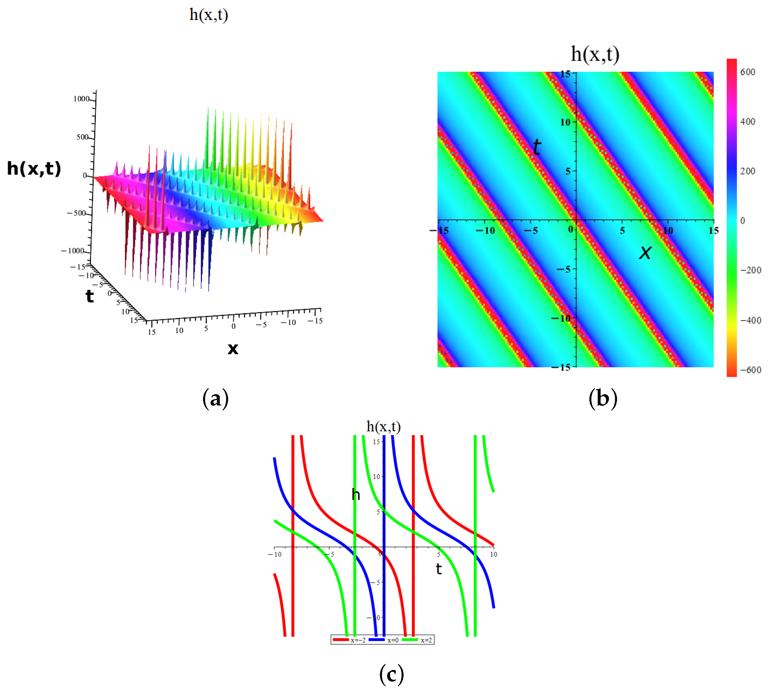 - Gu, Y.; Zhang, X.; Huang, Z.; Peng, L.; Lai, Y.; Aminakbari, N. Soliton and lump and travelling wave solutions of the (3+1) dimensional KPB like equation with analysis of chaotic behaviors. Sci. Rep. 2024, 14, 20966. [Google Scholar] [CrossRef] [PubMed]