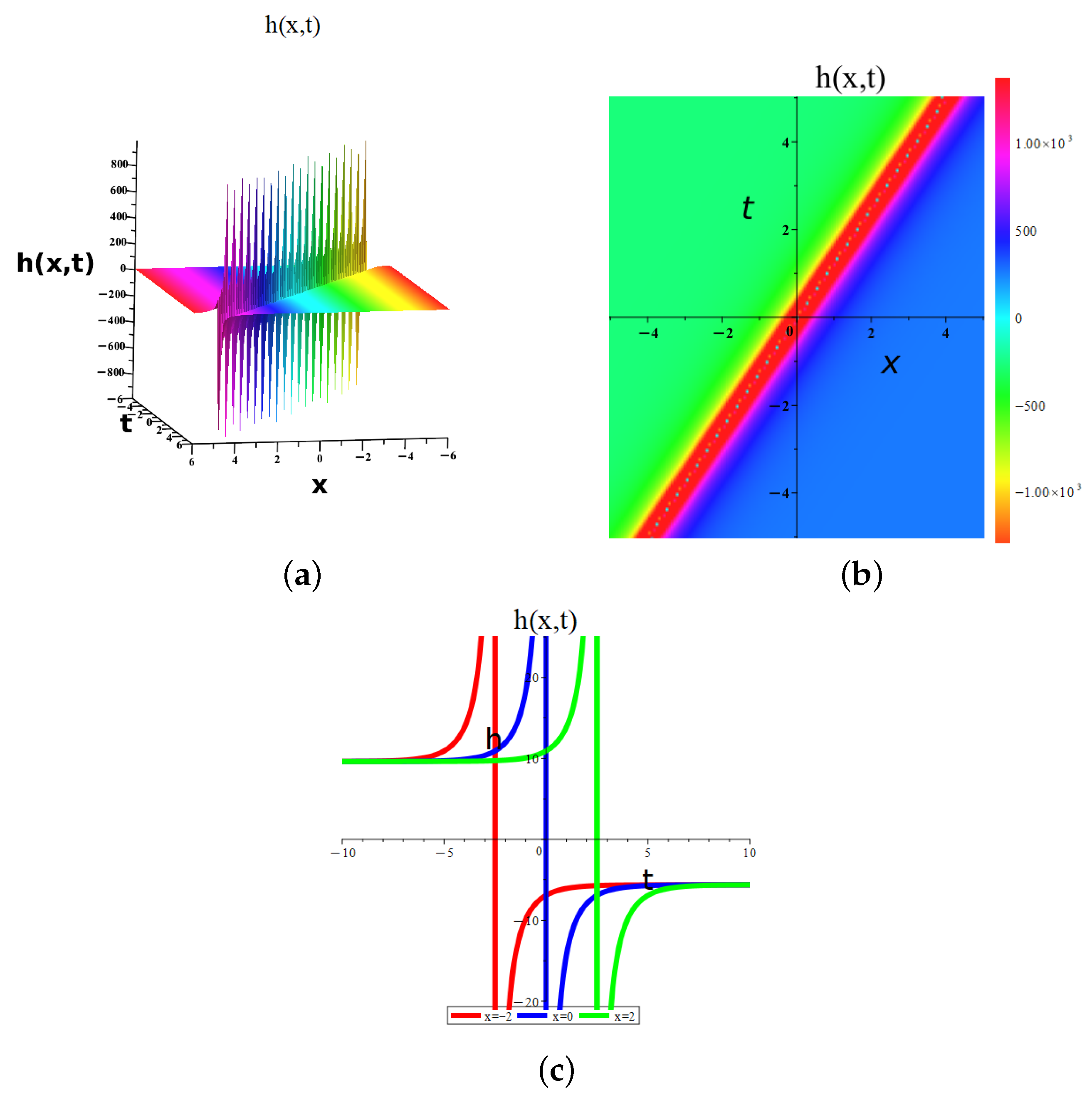 - Merge VII.Through Product 5, the exact combined dark soliton and singular solution isso that and .