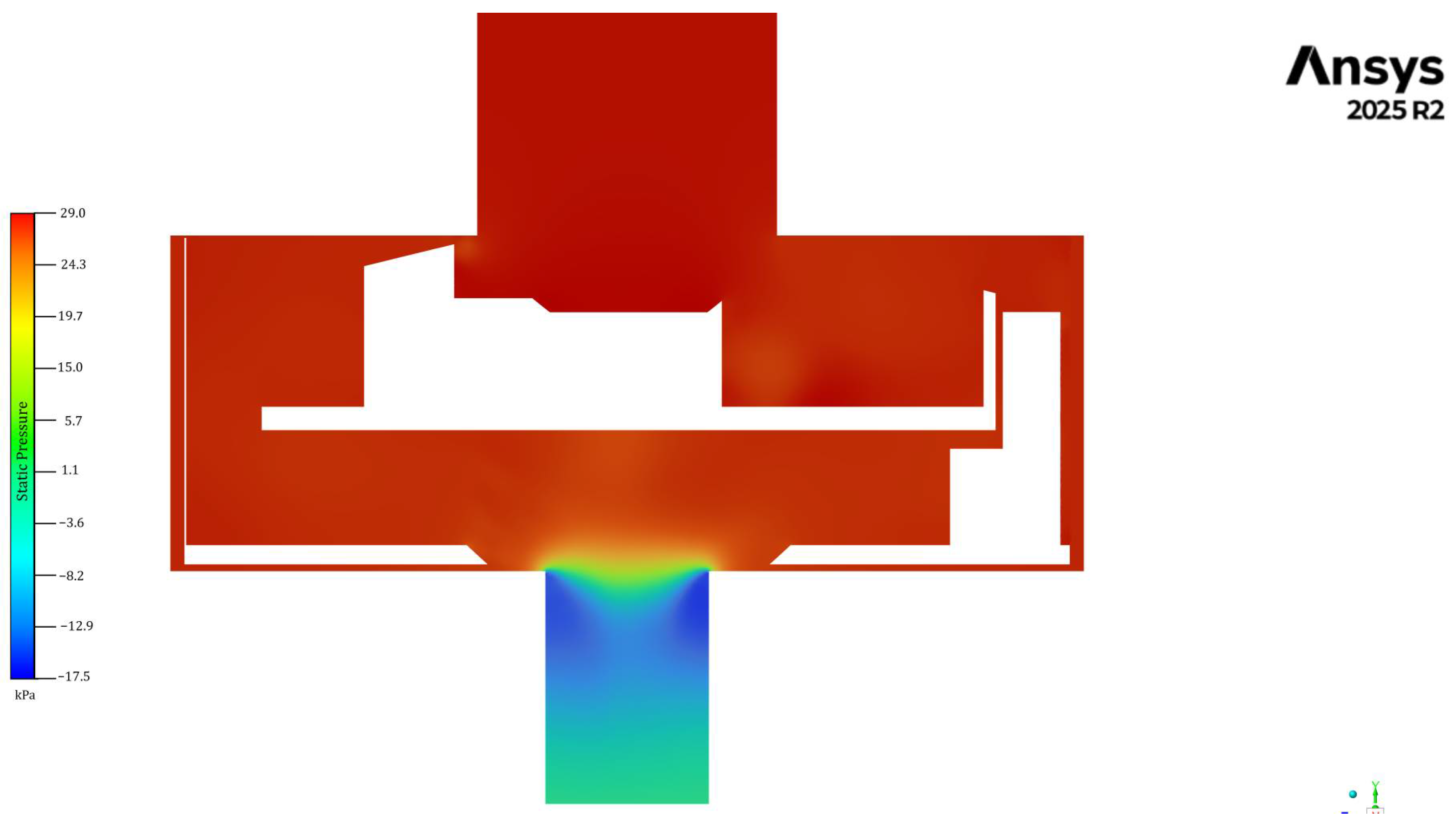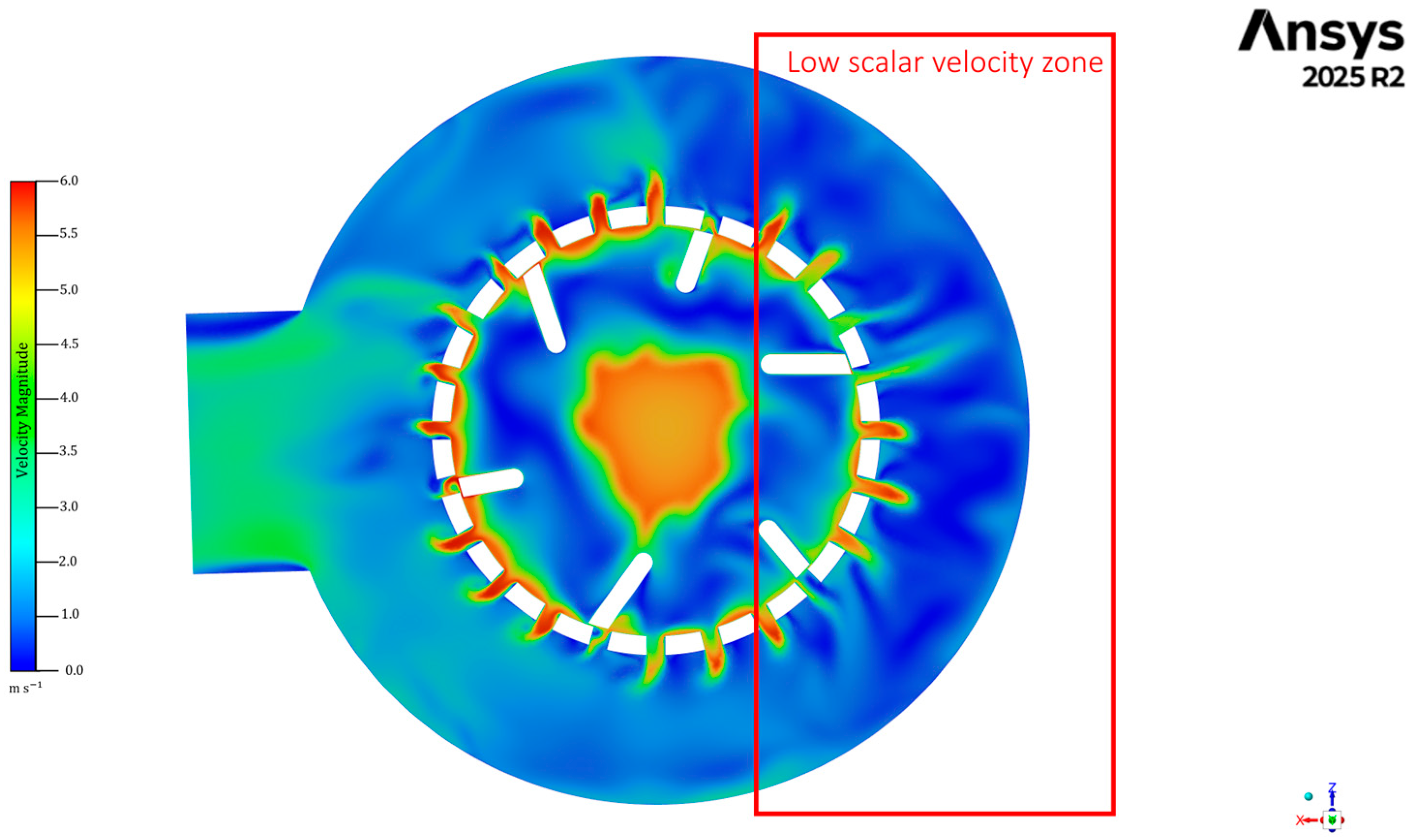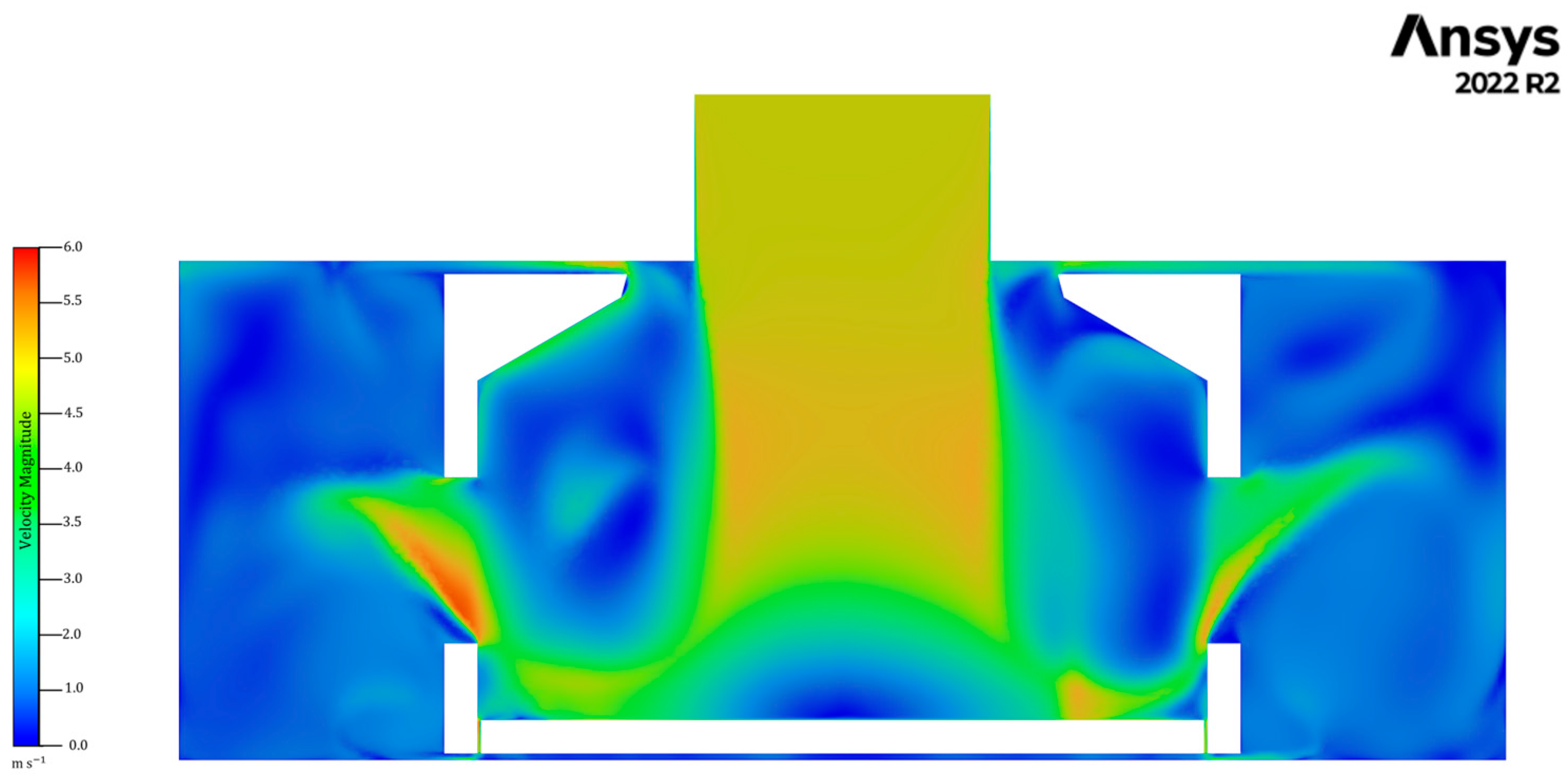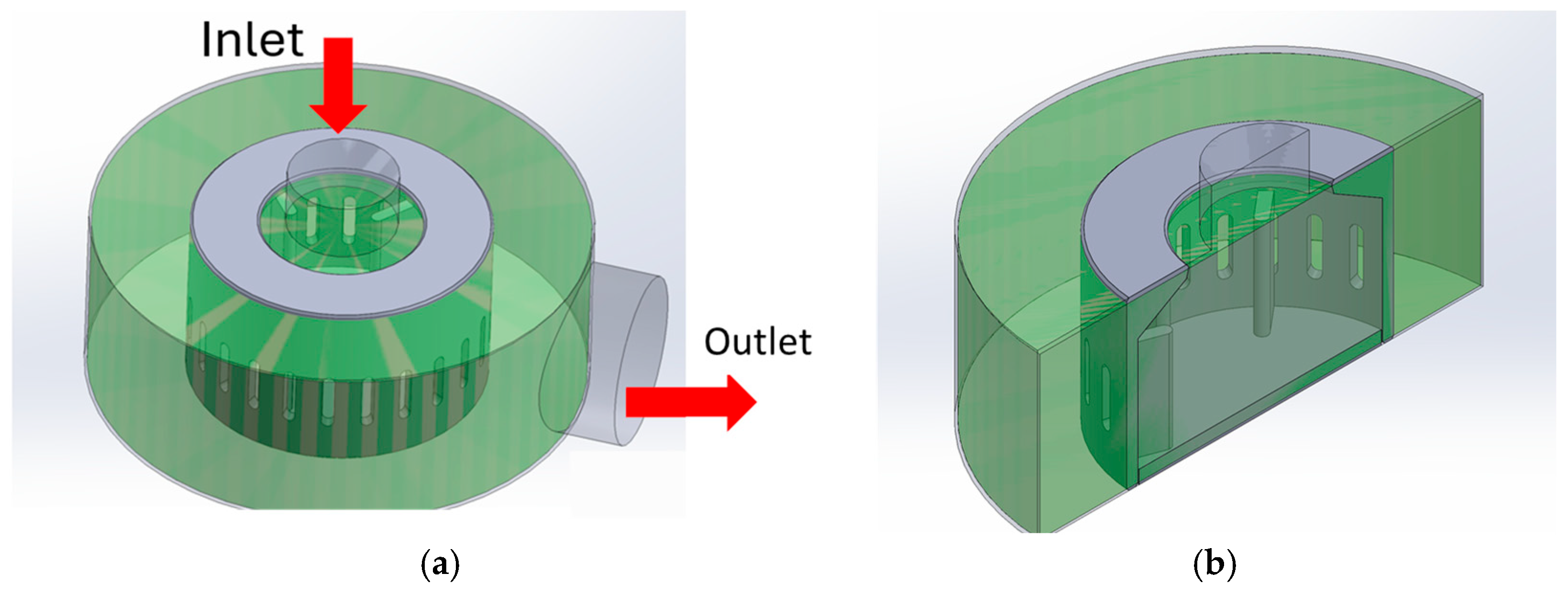 CFD simulations were carried out to investigate the fluid flow characteristics within the domain, incorporating turbulence modelling to capture the effects of rotational motion and wall interactions, using the ANSYS Fluent 2022 R2 solver. The simulations were carried out in a desktop workstation equipped with AMD Ryzen Model, 12 cores, 3.7 GHz and a RAM 4 × 32 GB, DDR4 3600 MHz CL18.