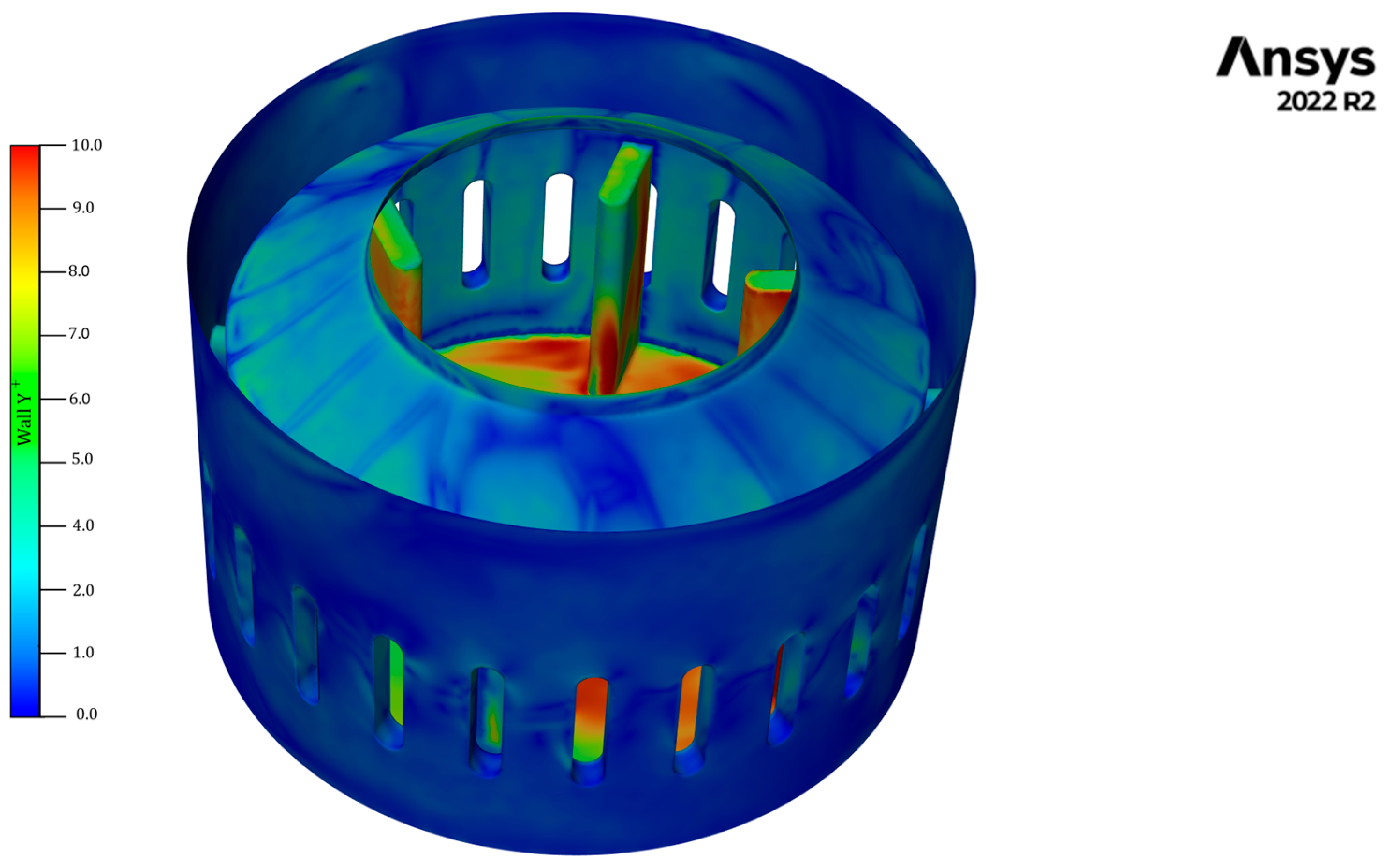 Figure 17. Wall y+ contours of the RS 2nd stage.