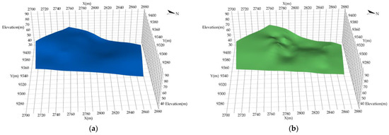 (a) Groundwater level surface model and (b) the bottom surface of gravel sand stratum.