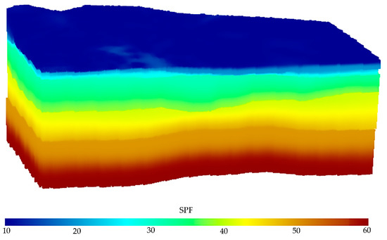 When a property filled exhibits linear characteristics, these linear characteristics can also be incorporated into the RBF interpolant [37,38]. Inspired by this, when interpolating the properties of the strata, especially when the number of sampling points is limited, we can introduce an SPF model, which reflects the depositional order of the strata, as an ancillary variable to enhance the property interpolation. This approach helps control the overall strata-bound trend of the properties, thereby improving the validity of the interpolation results.