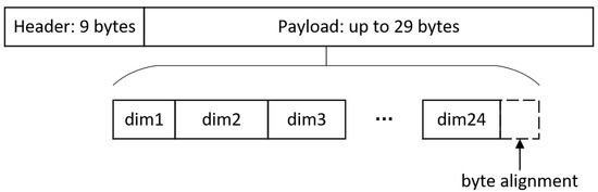 The sum of the resolutions of all dimensions (aligned to the nearest byte) represents the payload of the transmitted packet at each moment of the original, where the resolution is shown in of Table 1. This can be expressed as: .
