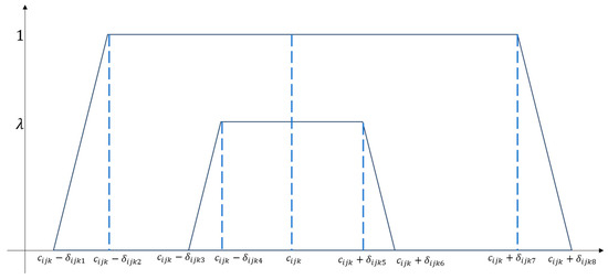 ([32]). A -level trapezoidal fuzzy number, represented as , is a fuzzy set defined on , where . Its membership function is given as: