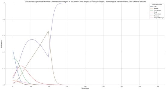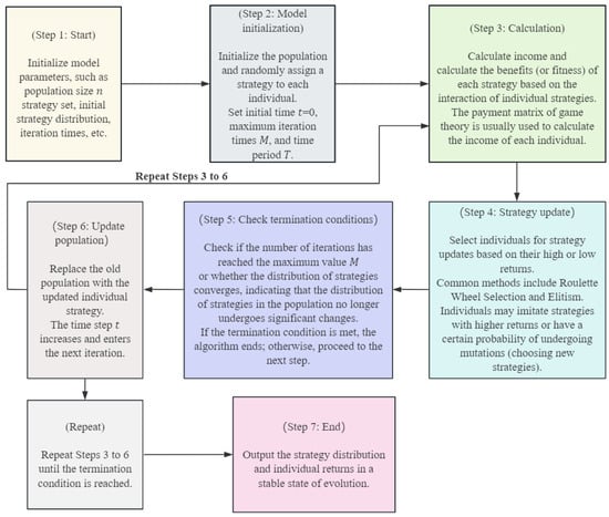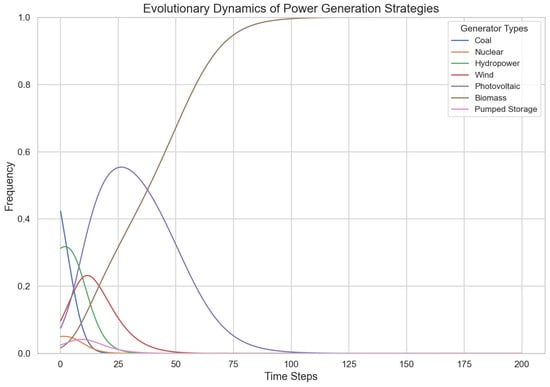 The application of game-theoretical methods in electricity markets has been extensively studied, with a significant focus on EGT. EGT provides a dynamic framework for analyzing how strategies evolve within populations of market participants, reflecting real-world competitive and cooperative behaviors. Studies by Cheng et al. [15] have demonstrated the utility of EGT in modeling interactions among multiple market players and power-generation companies’ decision-making in the emerging green certificate market, respectively.