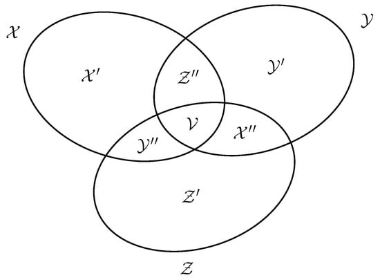 With reference to Figure 1 and Equations (32), let us denote with lowercase letters , the measures of sets , .