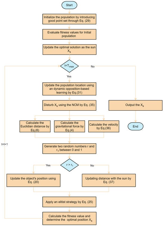 As the last type of MAs, optimization algorithms grounded in physical laws are inspired by algorithms abstracted from mathematics and physics. For instance, simulated annealing (SA) [31], the energy valley optimizer (EVO) [32], the light spectrum optimizer (LSO) [33], the gravitational search algorithm (GSA) [34], central force optimization (CFO) [35], and the sine–cosine algorithm (SCA) [36] belong to this category.