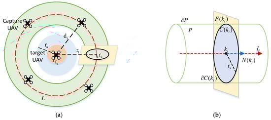 where is the distance between the i-th capture UAV and the target UAV, is the radius of the centerline of the closed circular pipeline, and is the radius of the closed circular pipeline. If and have the same value, the capture ranges will overlap, potentially causing conflicts in the priority assignment of capture points. To avoid this issue, should be set to be significantly larger than .