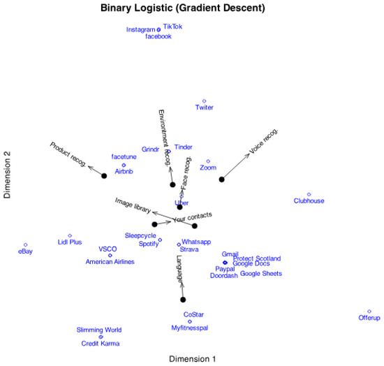 - Vicente-Villardon, J.L.; Galindo-Villardón, P.; Blazquez-Zaballos, A. Logistic biplots. In Multiple Correspondence Analysis and Related Methods; Greenacre, M.J., Blasius, J., Eds.; Statistics in the Social and Behavioral Sciences; Chapman & Hall/CRC: New York, NY, USA, 2006; pp. 503–521. [Google Scholar]
