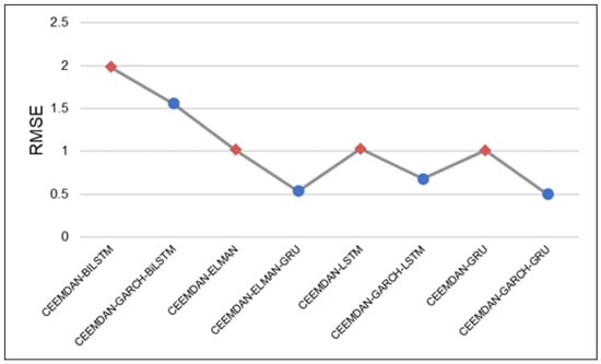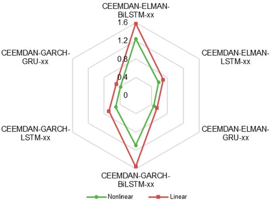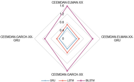 Additionally, the Diebold–Mariano test [22] is also used to test the significance of the prediction results of the models and frameworks. The DM test, a classical statistical test method, is often used to test whether the prediction effect of two models is significantly different. Through the RMSE, MAE, MAPE, and DM tests, this paper can make an effective and objective evaluation of the proposed decomposition-integration framework, CEEMDAN-GWO-GRU/GARCH-GRU.