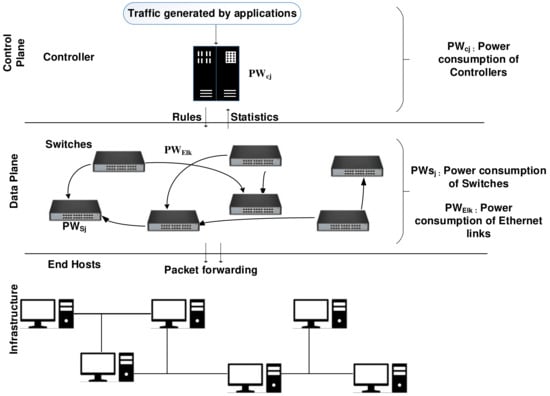 - Assefa, B.G.; Ozkasap, O. A survey of energy efficiency in SDN: Software-based methods and optimization models. J. Netw. Comput. Appl. 2019, 137, 127–143. [Google Scholar] [CrossRef]