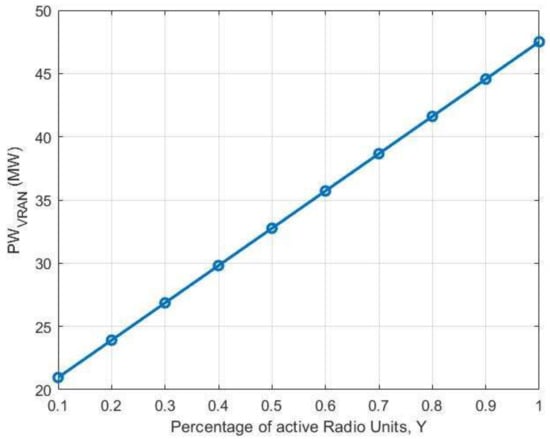 The power used by a virtualized RAN, PWVRAN, can be derived as follows: