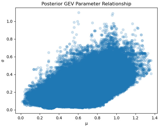 Relationship between GEV and parameters in posterior samples.