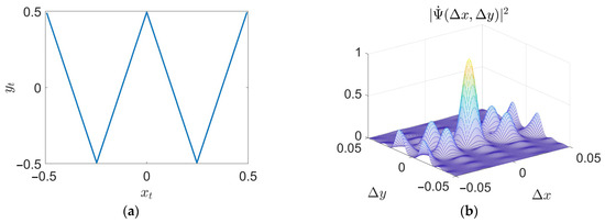 We can represent the modulus square of the function (28), considering Equations (3), (9) and (35) in such form:
