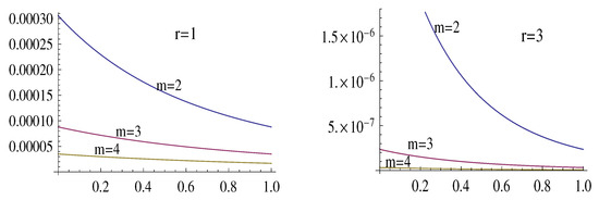 In Formula (15), m and r are the parameters that affect the error term . We stress that becomes very large for large r. Indeed, according to [3] (23.1.15), we have