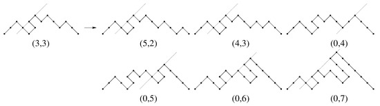 An underdiagonal path P is -avoiding path if every factor and in P is such that the up step lies on the diagonal (Figure 3).