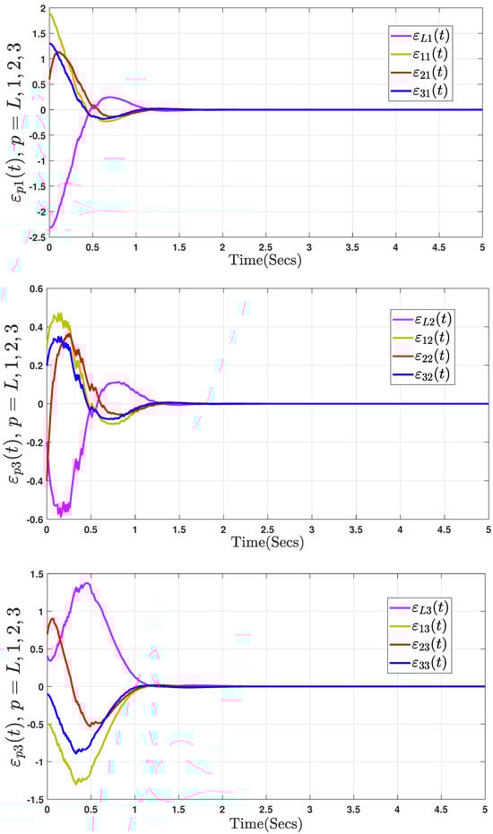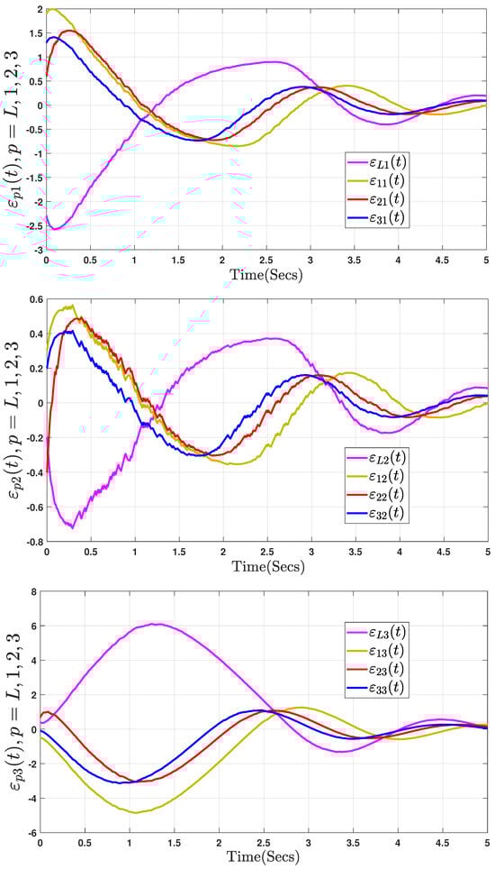 Trajectory of tracking errors in (40) using the DAETM scheme.
