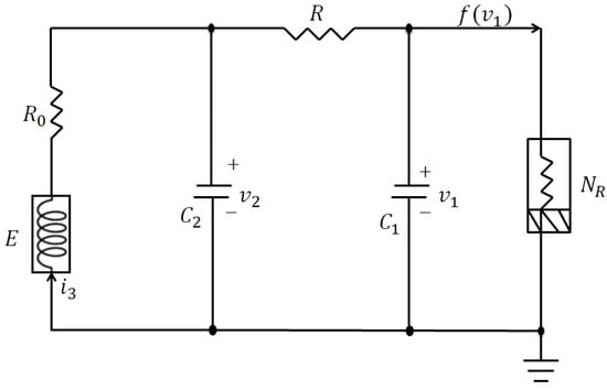 (Comparative Example). This subsection presents our results on the proposed control method for fractional-order Chua circuits []. The single-circuit model, shown in Figure 8, satisfies the following differential equations []: