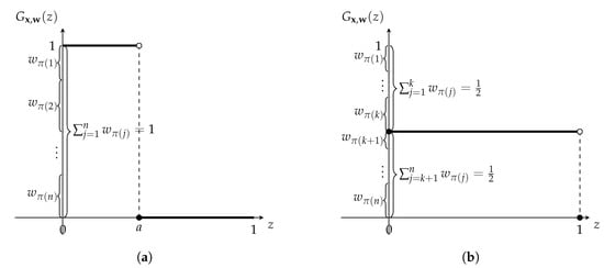 - Cases 3 and 4 highlight the Maximum dissension () property of these measures. Namely, if the most extreme evaluations (0 and 1) are distributed such that not necessarily half of the decision-makers use zeros as inputs and the other half of them use ones as inputs, but all the inputs corresponding to the half of the weight totals are zeros and all the inputs corresponding to the other half of the weight totals are ones, then the degree of consensus is minimal; i.e., it is equal to zero.