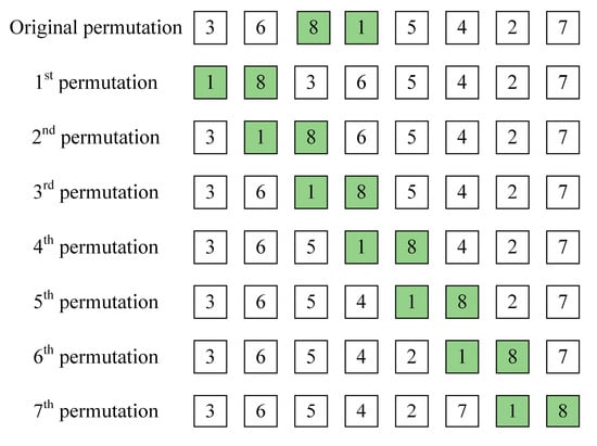 Approximated methods can be further divided into heuristic approaches and metaheuristic approaches. The prominent heuristics include the Campbell Dudek Smith algorithm (CDS) [], the Gupta algorithm [], and the Nawaz Enscore Ham algorithm (NEH) [], with NEH being widely regarded as the most well-known, efficient, and frequently utilized [,,,]. As for metaheuristic methods, Reeves et al. [] introduced a genetic algorithm (GA) to address the PFSP, with the goal of reducing the maximum completion time required for all tasks. De Fátima Morais et al. [] put forward three methods based on discrete differential evolution algorithms (DEAs) for solving the PFSP, aiming to minimize the maximum completion time. Abdel-Basset et al. [] improved the GA by combining the strategies of arithmetic crossover and uniform crossover. They also reinitialized randomly selected individuals in the population, aiming to solve the PFSP problem with the objective of minimizing the maximum completion time. Arık et al. [] integrated the iterative greedy algorithm into the artificial bee colony (ABC) algorithm to solve the PFSP. Zhang et al. [] suggested a cooperative game model integrated with a hybrid particle swarm optimization algorithm (HPSOA) to address the PFSP with multiple customer tasks. Bellabai et al. [] presented a bat algorithm (BA) to solve the PFSP, minimizing the maximum completion time. Kurdi et al. [] proposed a novel hybrid algorithm that integrates ant colony optimization (ACO) and the NEH heuristic algorithm for solving the PFSP. Xin et al. [] presented an enhanced discrete whale optimization algorithm (WOA) derived from differential evolution. The algorithm incorporates enhanced search and job exchange mutation strategies to address the PFSP, considering transportation time variations. Chen et al. [] designed a hybrid grey wolf optimizer algorithm (HGWOA) that integrates the NEH, a levy flights strategy, and a critical block exchange strategy based on the critical path, aiming to solve the PFSP. It is evident that in recent years, numerous scholars have been dedicated to exploring and attempting strategies that combine heuristic and metaheuristic algorithms, aiming to achieve more significant results and breakthroughs in solving the PFSP. This integration not only boosts the search efficiency of algorithms but also increases the effectiveness and flexibility in addressing problems.