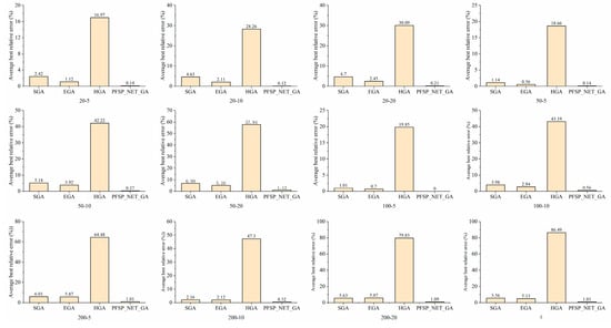 To simplify the calculation process, the processing energy consumption of all machines in the experiments is set to five, and the idle energy consumption is set to two. This setup aims to simulate the energy consumption differences of machines in operating and idle states in a real production environment, thereby more accurately evaluating the effectiveness of the energy-saving strategy. The experimental results are shown in Table 10, where “PFSP_NET_IGA” represents the algorithm without the energy-saving strategy and “GPFSP_NET_IGA” represents the algorithm with the applied energy-saving strategy.