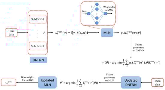Meta-learning: Through the regular learning process described above, the DNFNN updates its weight parameters. Subsequently, the meta-dataset is input into the updated DNFNN, producing a new error . At this stage, the parameter can be refined by minimizing .