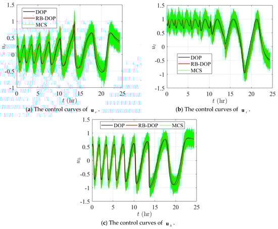 The RB-DOP in numerical example 2 was adapted from the DOP in the literature [14], which contains three state variables, , and one control variable, . The formulation of this RB-DOP is given as follows:
