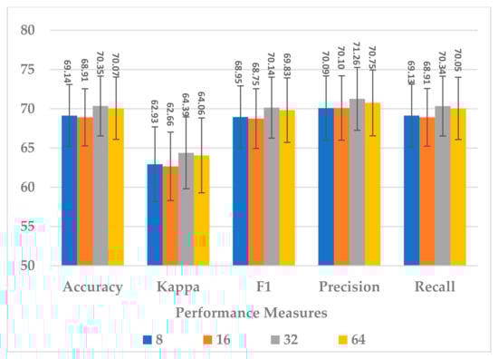 These reported results demonstrate the significance of performing spectral analysis and magnifying brain waves relevant to MI tasks. In addition, analyzing the long-term temporal dependencies among brain waves and inspecting multiscale and high-level features assist in adequately detecting motor imagery tasks. The proposed data augmentation was also able to expand the size of the dataset and effectively maintain label-preserving. This is reflected in the performance of the SSTMNet model, which overcomes overfitting and produces a higher accuracy compared to training the SSTMNet model without data augmentation.