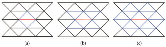 Figure 2 explains the methodology of building a subnetwork through the central link. The red and blue lines in Figure 2 represent the central and other links in the subnetwork. When CycLen is chosen as 3, 4, and 5, the subnetwork scale gradually increases. It should be noted that we only limit each cycle added to the subnetwork and, eventually, there may be cycles in the subnetwork that exceed the limit in length. With the increase in the size of subnetwork, the scale of the corresponding auxiliary problem also gradually increases. To limit the scale of the auxiliary problem, we introduce the parameter “CycNum” to determine the maximum number of links added in the subnetwork. We add links to the subnetwork one cycle at a time, and when the number of added links reaches the predefined threshold CycNum, we stop adding more links.