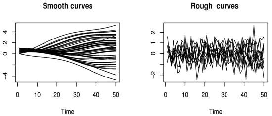 In this section, we present an empirical investigation to evaluate the practical usability of the constructed estimators. Specifically, our objective is to demonstrate the feasibility of employing various data-driven selection strategies to determine the functional index and smoothing parameters and . A key challenge in this analysis lies in constructing functional regressors in practice. To address this, we simulate data using two distinct types of curves: (i) smooth curves and (ii) rough curves. The generation of these curves is defined as follows: