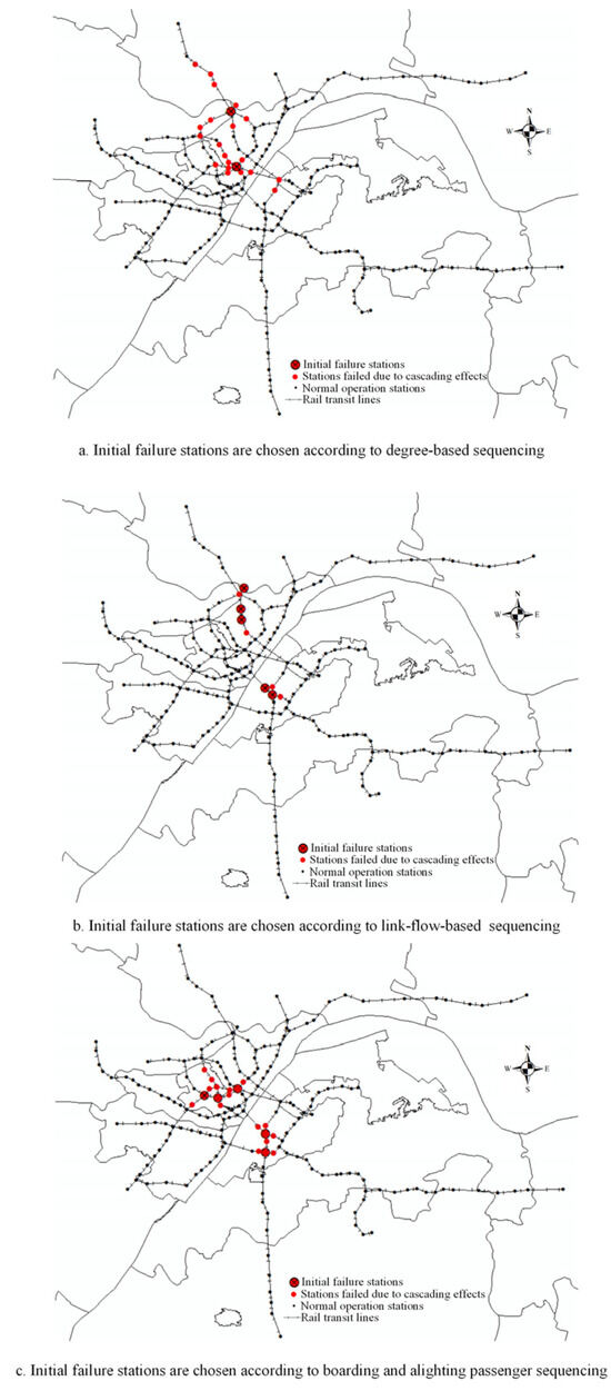 A station’s degree indicates the number of stations directly connected to it, which measures the connectivity and structure-based coupling among stations. The passenger flow on links and the boarding and alighting passengers measure the passenger-flow-based coupling among stations. This paper combines both structural and passenger-flow coupling between the stations.