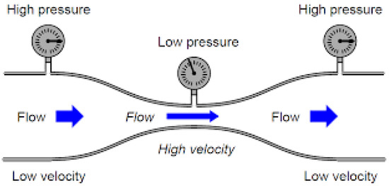 Low-velocity–high-pressure effect causing the arterial wall to expand.