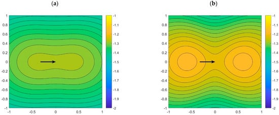 It should be noticed that in linear size-dependent thermoelasticity under a steady-state condition, the thermal heat conduction Equation (44) is uncoupled from the mechanical Equation (45). This means the thermal equation does not depend on the mechanical equation. Therefore, the thermal Equation (44) can be solved independent of the mechanical Equation (45). However, solving the mechanical Equation (45) for requires the temperature field . Consequently, Equations (44) and (45) may be referred to as the uncoupled steady-state size-dependent thermoelasticity equations.