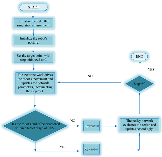 Training Environment: In Section 3.2, Equation (8) is used to perform DH modeling of the robot, establishing the robot motion accuracy model. The robot is defined as the agent, and Equation (16) is used to help the agent learn the optimal policy for the MDP.
