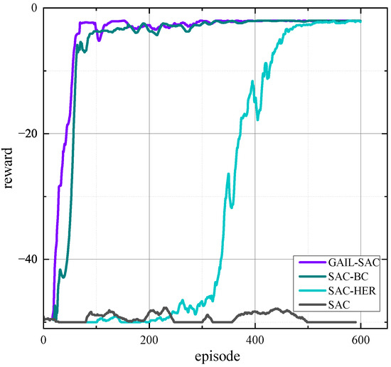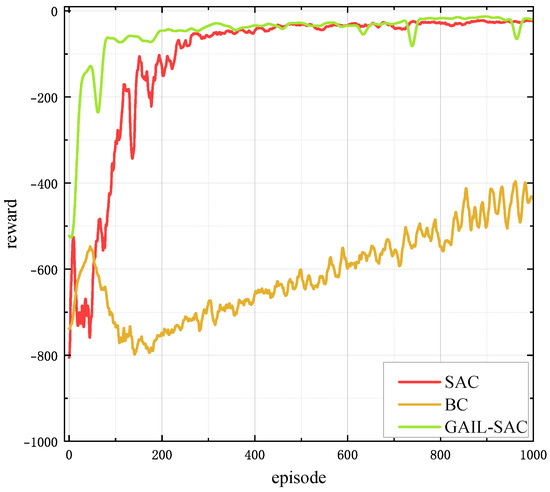 - Stage 3: This stage utilizes the GAIL-SAC framework to improve the convergence speed and trajectory accuracy of reinforcement learning training, and its algorithmic process is shown in Table 1.