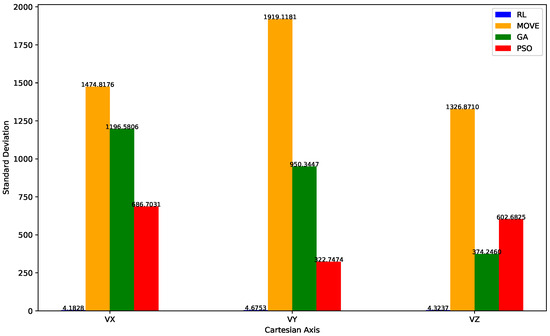 Comparison chart of the standard deviation of velocity variation in Cartesian space.
